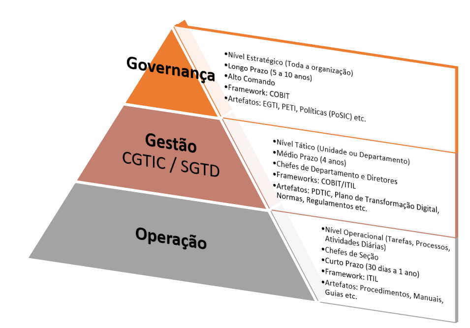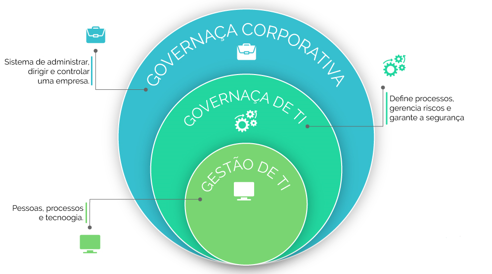 Vale lembrar que a governança de TI é um eixo da governança corporativa, que cuida de parâmetros e políticas gerais do funcionamento da empresa.